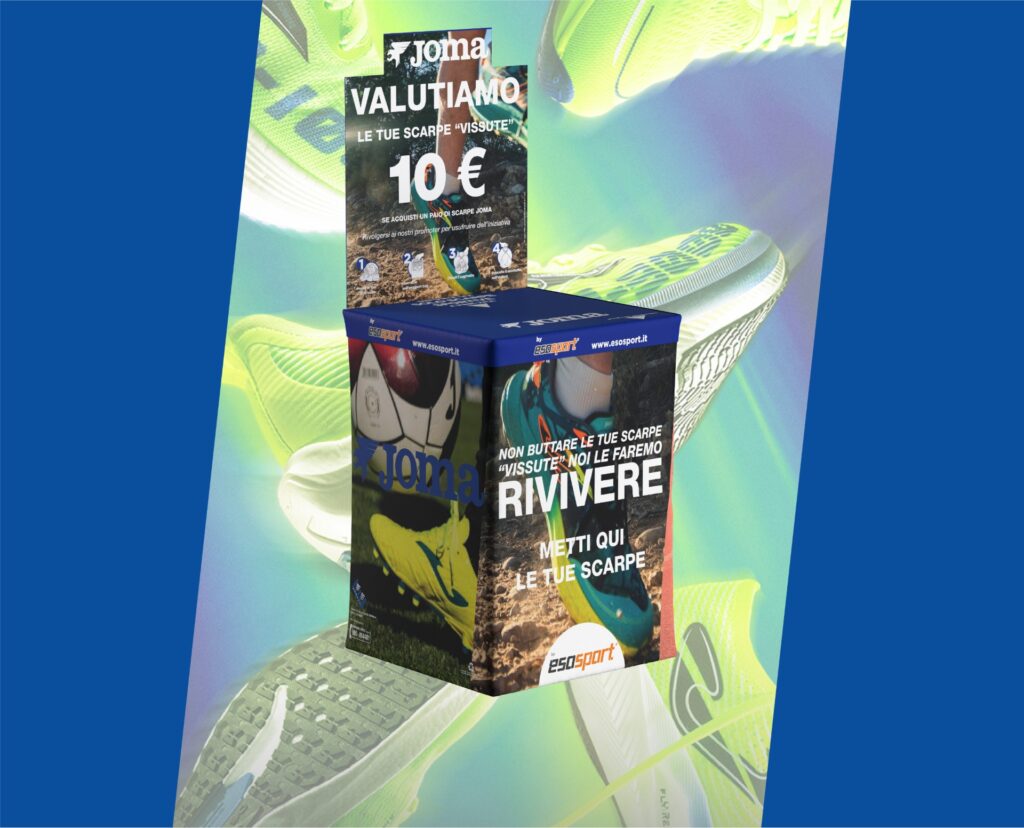 Nei punti vendita Joma, aderenti all’iniziativa, i clienti potranno depositare nell’apposito contenitore ESObox le proprie scarpe giunte a fine cammino.