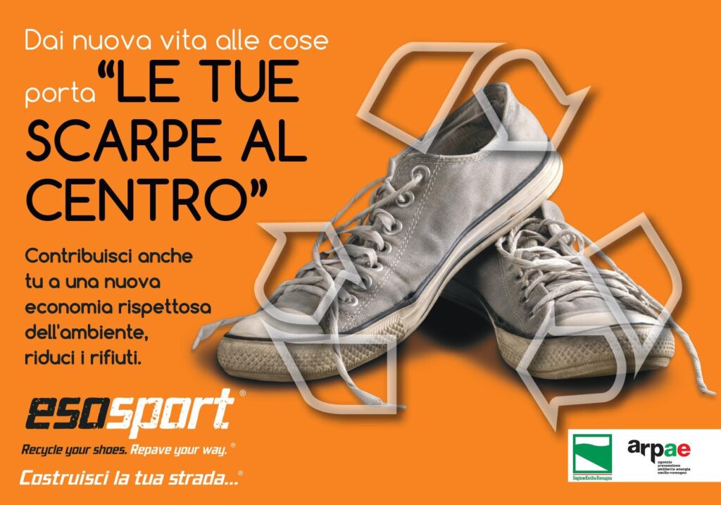 L’Agenzia Regionale per la Prevenzione e l’Ambiente, la Rete dei Centri di Educazione alla Sostenibilità dell’Emilia-Romagna e i gestori dei rifiuti uniti con esosport per la raccolta di vecchie scarpe da ginnastica (e infradito in gomma) nell’ambito del progetto regionale “Le tue scarpe al centro”